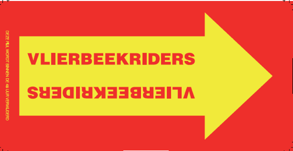 - Bewegwijzering voor de wegritten is aanwezig, volg de pijlen van Vlierbeekriders (zie voorbeeld hieronder)